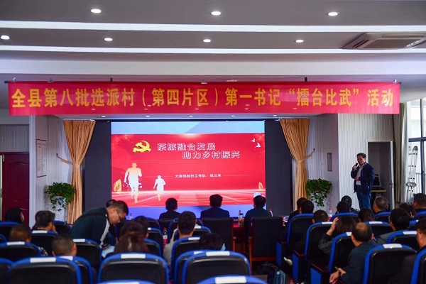 黨的二十大報告指出,全面推進鄉村振興,全面建設社會主義現代化國家,最艱巨最繁重的任務仍然在農村。為認真貫徹落實黨的二十大精神和省市縣委關于選派工作部署和相關要求,促進全縣第八批選派干部“比學趕超”,充分發揮選派干部在抓黨建促鄉村振興中的生力軍作用,11月10日上午,來自全縣鄉村振興第四示范片區的8名村黨組織第一書記、駐村工作隊長在風景秀麗的蔡村鎮參加選派村第四片區“擂臺比武”活動。
