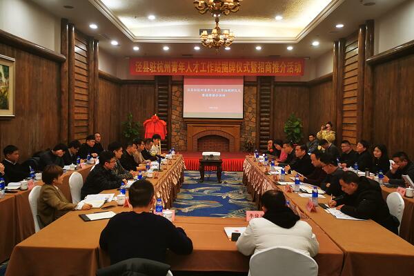12月29日,涇縣在杭州舉辦涇縣駐杭州青年人才工作站揭牌儀式暨招商推介座談會。縣委常委、組織部長朱偉出席會議并講話。40余名涇縣籍在杭優秀人才代表齊聚一堂,共敘家鄉之情、共謀發展之道。縣委組織部副部長潘紅晟、團縣委書記彭浩、縣招商合作服務中心主任楊勇參加座談會。