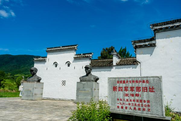 政治部設(shè)在云嶺在羅里村以西2.5公里的湯村,一座三間兩廂前后兩進(jìn)的地主宅院。1938年8月至1941年1月,新四軍政治部在此工作。兩側(cè)廂房為主任袁國(guó)平、副主任鄧子恢、秘書(shū)長(zhǎng)黃誠(chéng)及其他警衛(wèi)人員的辦公室及臥室。政治部下設(shè)組織部、宣傳部、民運(yùn)部、敵工部、保衛(wèi)部、《抗敵報(bào)》編委會(huì)等機(jī)構(gòu),均分布在整個(gè)湯村內(nèi)。政治部曾在此幫助地方分別建立“農(nóng)抗會(huì)”、“工抗會(huì)”、“婦抗會(huì)”“商抗會(huì)”、“兒童團(tuán)”、民兵等各類(lèi)群眾抗日?qǐng)F(tuán)體,開(kāi)展抗日宣傳,瓦解敵軍和減租減息活動(dòng)。1939年2月,政治部召開(kāi)了全軍第二次政工會(huì)議,制定新四軍政治工作條例(草案)。同時(shí)召開(kāi)過(guò)江南敵工會(huì)議和全軍青年代表會(huì)議。周恩來(lái)同志在云嶺期間,在此為《抗敵報(bào)》題寫(xiě)了報(bào)頭。